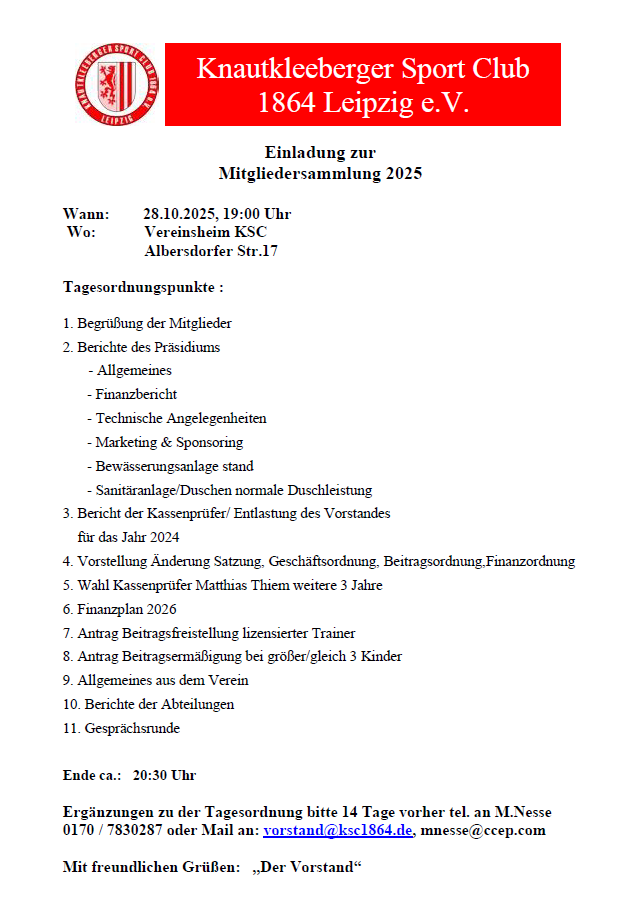 Aktualisierte Tagesordnung Mitgliederversammlung KSC 2025